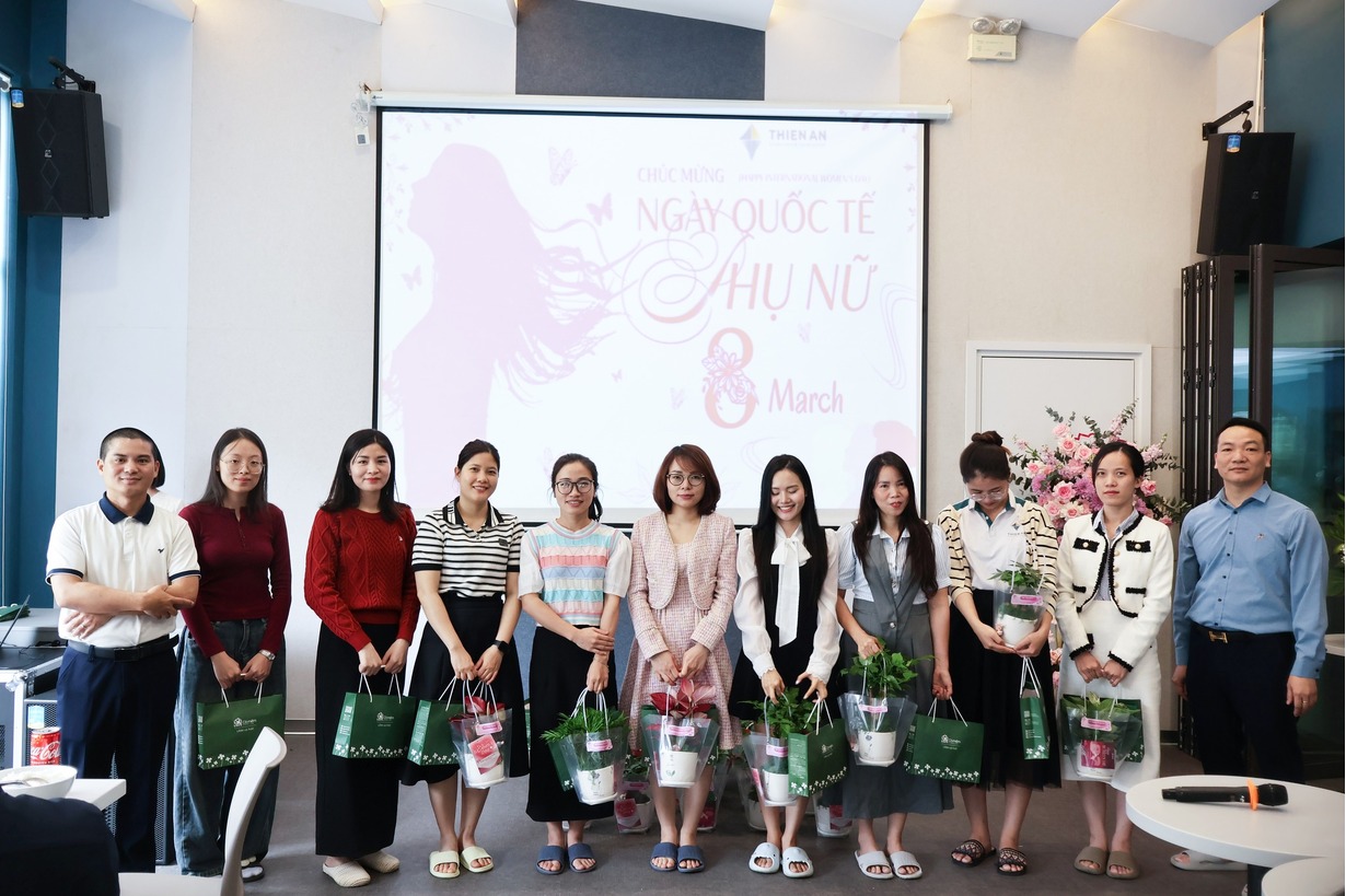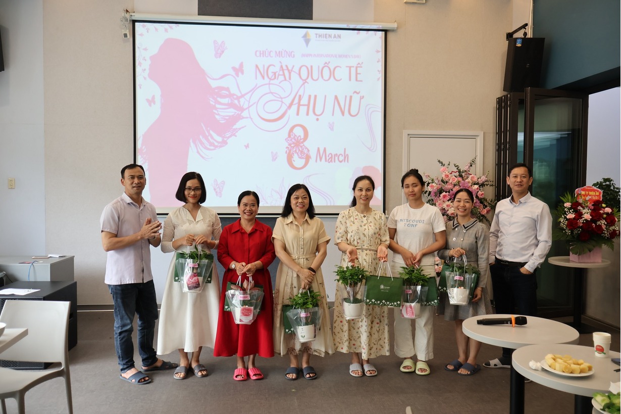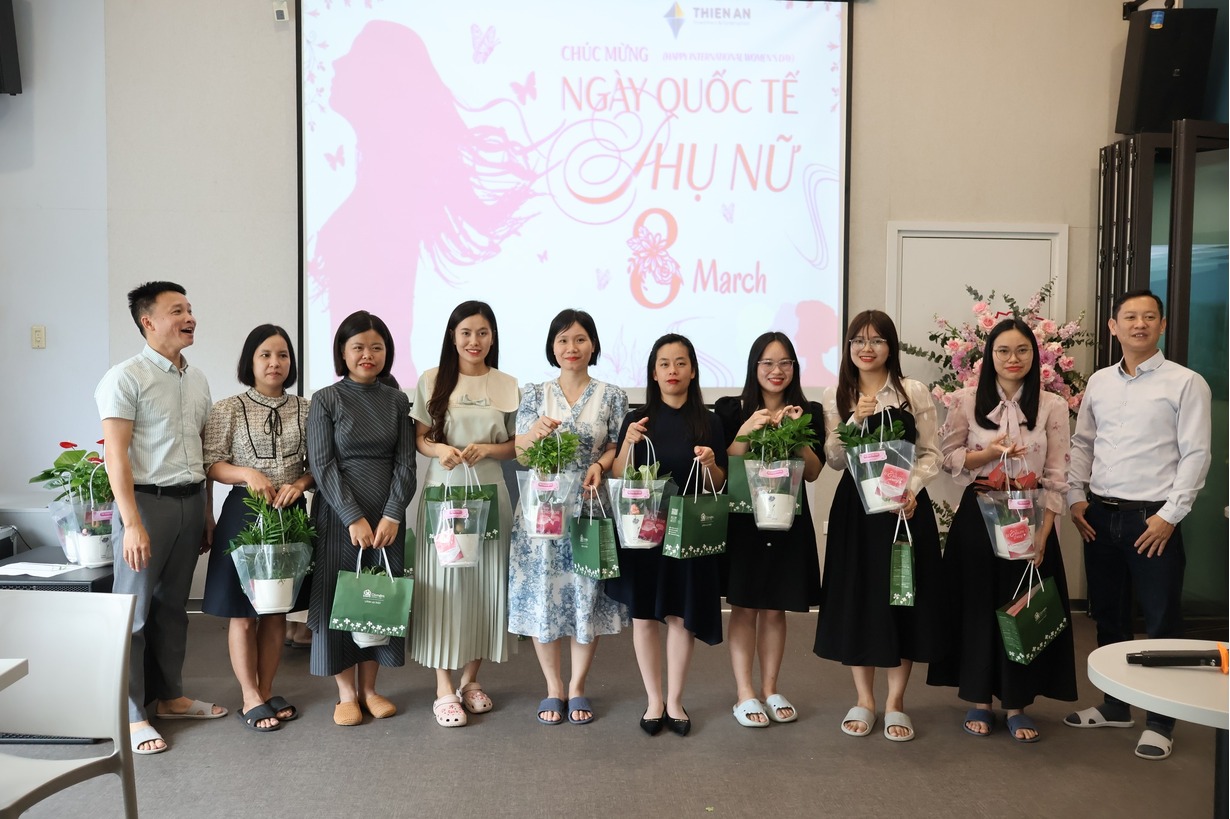 Những bó hoa tươi thắm, những món quà thật ý nghĩa cùng những lời chúc chân thành từ BGĐ, Công đoàn và gia đình Thiên Ân đã được gửi tới các chị em – những người phụ nữ xinh đẹp, bản lĩnh và luôn tận tâm trong công việc mỗi ngày.
